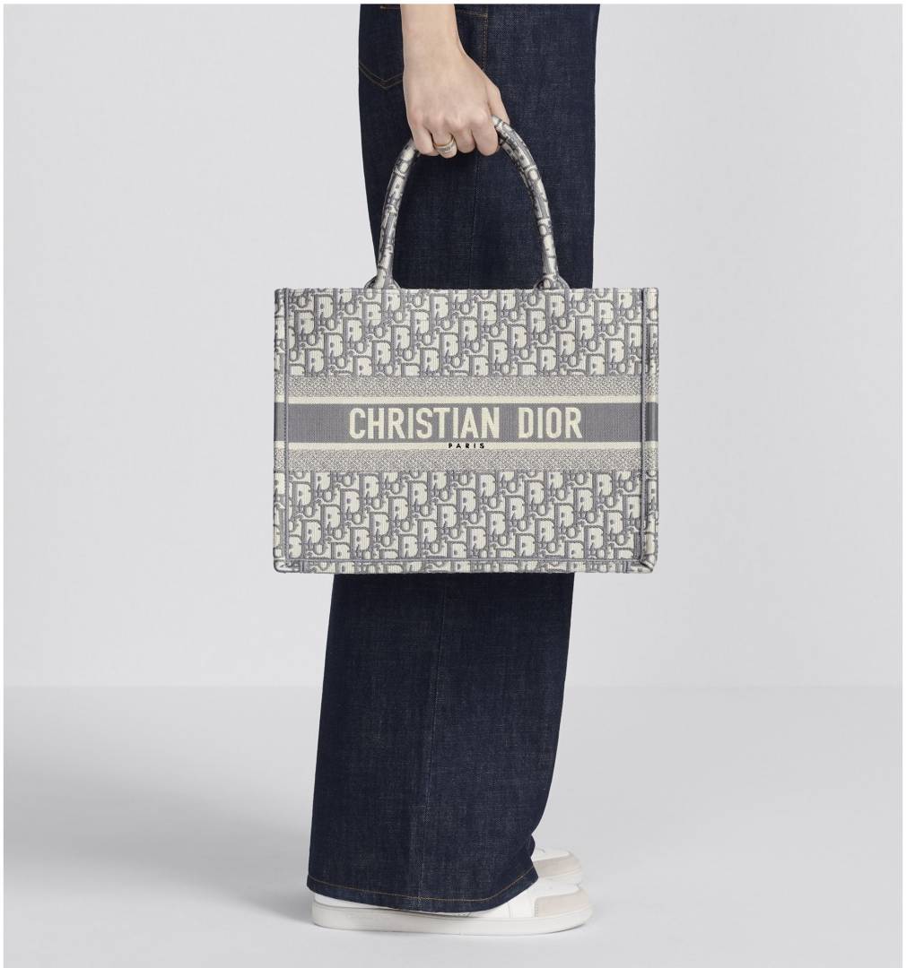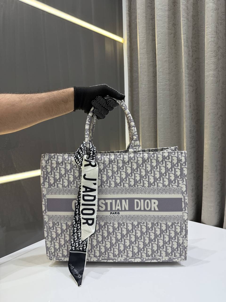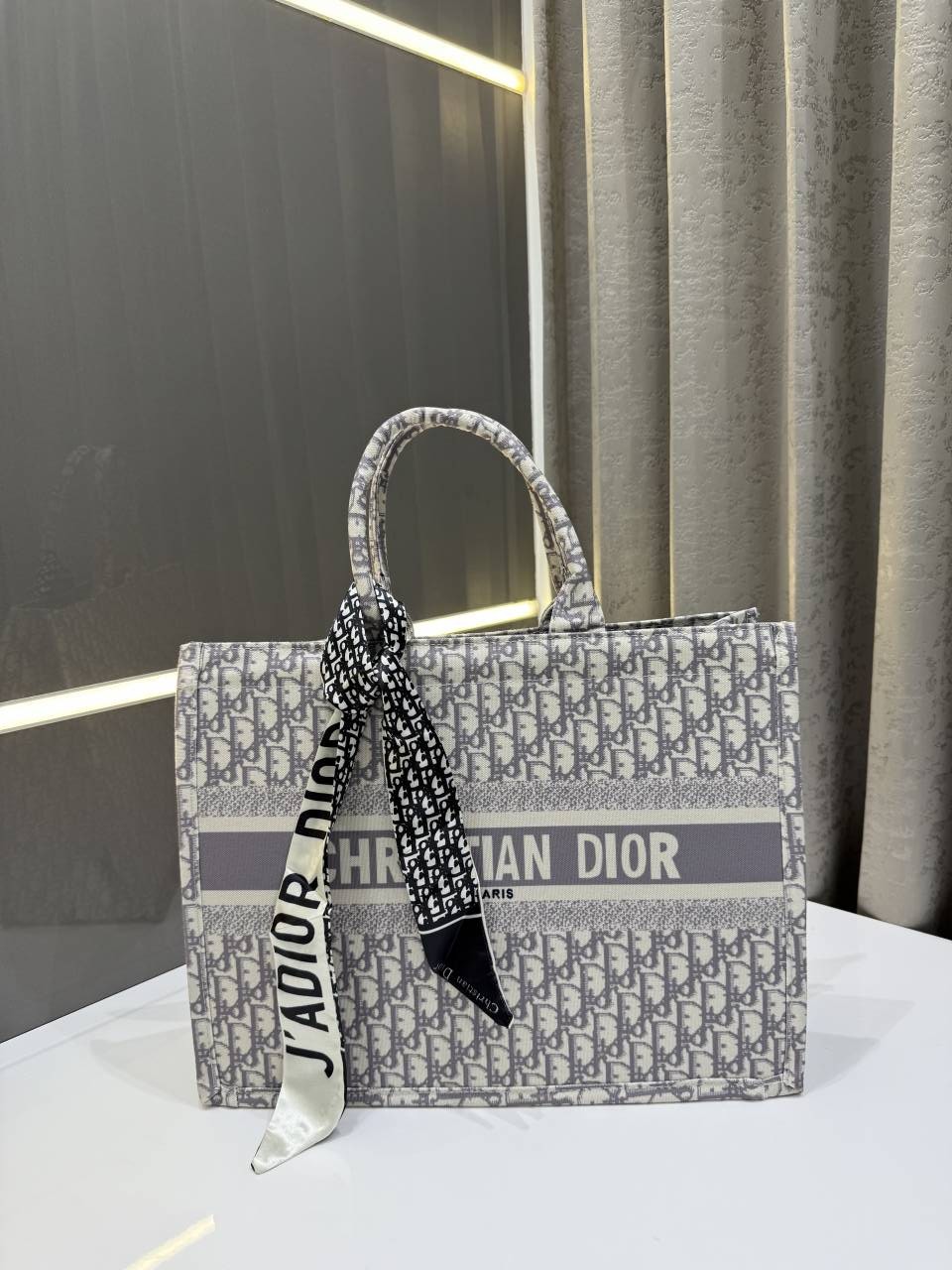 CHRISTIAN DIO.R GREY MONOGRAM ZIPPER TOTE PREMIUM WITH DUST BAG